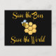 This environmental design features a honey bee flying by a honeycomb and the caption  "Save the Bees Save the World."  Save the honey bees.   No pesticides.