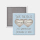 Save the date 25th anniversary silver fade hearts refrigerator magnet.  Click ""Customise" to re-size/re-position silver fade heart image, change background colour, and/or revise text.  Personalise font style, size and colour.  Silver hearts are especially appropriate for a 25th wedding anniversary celebration. The design can be customised for an engagement party, bridal shower, rehearsal dinner, wedding, anniversary or valentine's party favour or save-the-date.