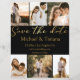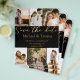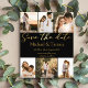Announce your special day with this elegant 6 photo collage wedding save the date flyer. Featuring a sophisticated black background and chic gold script handwriting, this modern design allows you to showcase six of your favorite engagement photos.