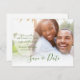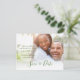The design features a custom horizontal photograph front with template details in the space left of the couple. Replace the placeholder photograph with your similar horizontal format photo that leaves space to the side for the text. On the back, replace the placeholder QR code with your wedding website QR code. Personalise the template information, remove any text or click customise to select a font style, size, and colour you prefer. Placeholder photograph courtesy pixabay.com.