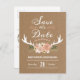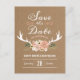 Send a stylish save the date postcard a floral antler graphic. Customise the text on both sides with details about your wedding.