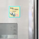 It was a bit smaller than expected, but I was too excited to check dimensions. The product itself send well printed though the grey text is a bit paint. Magnet worked perfectly on my fridge.