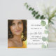A modern and elegant photo Save the Date card. A chic white background decorated with eucalyptus greenery. Personalise and add your photo, and details.
