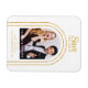 Save The Date Black Gold Stylish Script Modern Wedding Magnets features your favourite photo inside a golden arch on a white background. Personalise with your text by editing the text in the text boxes provided. Designed for you by ©Evco Studio www.zazzle.com/store/evcostudio