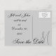 Modern, simple, black, grey and white Save the Date Postcard design by Elke Clarke ©2008. Wedding Announcement Customisable with your Date, First Names and Initial. Also choose your colours to match your wedding colour scheme.