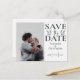 Elegant save the date announcement is the prefect to get your wedding plans in motion. It features a photo template and large 'save the date' typography with the addition of botanical elements, all on a white background. Customise with your own detials.