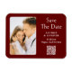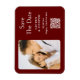 Save The Date Black White Stylish Script Modern Wedding Magnets features a burgundy background with your custom photo. Personalise with your text by editing the text in the text boxes provided and add your website URL for your custom QR code. Designed for you by ©Evco Studio www.zazzle.com/store/evcostudio