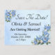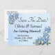 Save The Date - Blue Peony on Blue Announcement Postcard