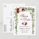 Save The Date Botanical Green Burgundy Floral Wood Announcement Postcard