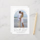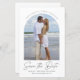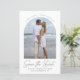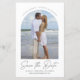 Save the Date Budget Wedding Announcement. Modern ultra-thin pen stroke casual script below arch framed photo. Completely versatile do-it-yourself style layout. Easily adjust the size, colours, style and placement of all elements. Note: The curved text should work with most names, but you can make adjustments or change it to standard text by clicking "Customise further."