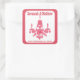 Pink Chandelier Old Western Lodge Wedding Stickers- to change background colour click customise - click edit - select last tool on drop down and choose any colour shown or insert your own RGB hex code for your custom wedding colour - to change font colour select the text you wish to change and then click on the colour box next to the "f" (font) symbol and change the font colour to any colour -