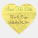 "Save the Date" Curls Over Yellow Personalised Heart Sticker