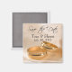 Save the Date Magnets, Script with gold wedding bands rings design. Pretty and elegant design with fancy writing, and your personalised details. Perfect for a gold and white themed wedding theme.