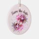 Beautiful save the date custom text and background colour ornament with lovely pink flowers.