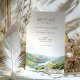 Announce your wedding with this charming watercolor destination "Save the Date" card, featuring a picturesque depiction of the Douro Valley, Portugal. The card showcases a beautiful blend of soft pastel hues, including lush green, tranquil blue, and earthy beige. The detailed watercolor artwork captures the essence of the Douro Valley's rolling vineyards and serene river, evoking a sense of romance and elegance. Perfect for couples planning a destination wedding, this card sets a sophisticated and inviting tone for your special day. Customise with your wedding details to create an unforgettable impression.