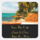 Save The Date Dreamy Tropical Beach with Rowboat Square Sticker
