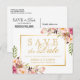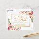 Save the Date Elegant Chic Pink Floral Gold Frame Announcement Postcard