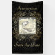 Save the Date and Your Photo in Elegant Gold Foil Look Scrollwork Script on Black. Words can be change to suit your event.