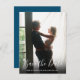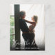 This modern script photo save the date card features your special photo overlayed with an elegant script save the date above your names, date and venue in white text. The reverse has additional save the date details, including your wedding website. You can customise the background to your favourite colour. Designed by Thisisnotme©