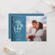 This elegant white script photo save the date card features your special photo and a decorative script save the date above your names, date and venue. The reverse has additional save the date details, including your wedding website. You can customise the background to your favourite colour. Designed by Thisisnotme©