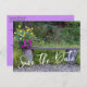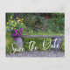 Send out an early announcement for the upcoming family reunion with this save the date postcard featuring a lush green background, rustic pine tree stump bench, and bucket of colourful flowers on the front. Personalise all the details on the back, remove text, or click customise to select a typeface style, size, and colour you like. Replace the photograph with your horizontal format photograph or leave it as it is.
