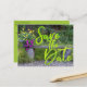 Send out an alert for the upcoming family reunion with this postcard announcement featuring a lush green background, rustic pine tree stump bench, and bucket of colourful flowers on the cover. Personalise all the details on the back, remove text, or click customise to select a typeface style, size, and colour you like. You can even replace the photograph with your horizontal format photograph.