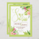 A stunning Save the Date announcement with tropical flowers and foliage framed in lime-green. Perfect for a destination wedding or summer wedding right at home. (<a href='http://www.freepik.com/free-vector/bachelorette-card-with-flowers-and-leaves_1092695.htm'>Designed by Freepik</a>). <br/><br/>The card is easy to customise with your wording, font, font colour, paper shape options and choice of six paper types.<br/><br/>Not exactly what you're looking for? All our products can be custom designed to meet your needs at no extra charge.<br/><br/>Simply contact us at askcottonlamb@gmail.com<br/><br/>Coordinating products available: Just ask us!