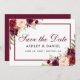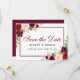 Watercolor Floral Burgundy Marsala Save The Date Engagement Card - Burgundy Text - Burgundy Back