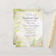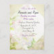 Soft muted pastel colours of flowers as the backdrop on a white diamond super imposed in the backround with a lighter green shade around the corners. Classy spring themed wedding invite with elegant grey and lavender fonts.