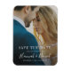 This simply chic photo wedding save the date photo magnet has a warm, minimalist design. It features SAVE THE DATE text above your first names and date and wedding location. This text is white and your names are highlighted with a lively, whimsical handwriting font that lends a sense of warmth and familiarity to this modern minimalist look. Use the intuitive design tools, your favourite photo and your inspiration to make it uniquely yours!