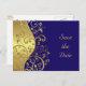 Save the Date--Gold Swirls & Dark Blue Announcement Postcard