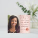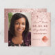 On front: Add your own vertical size photo of the graduate. A rose gold, blush background colour, decorated with stars. Personalise and add a name and date. The name and the text: Save the Date are written with a modern hand lettered style script.