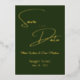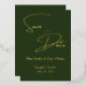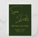 These Green Gold Foil Pressed Save The Date cards are designed in a modern and minimalist style with a foil pressed monogram and your text of choice on a rich green background . All background colours, text colour and foil colour can be changed by you in the design tool. This classy Save the Date Invitation is a sophisticated choice for any elegant wedding.