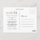 Gorgeous neutral grey/grey cursive script typography on the front of this designer postcard which you can upload into with your own engagement/save the date photo portrait. Easily and quickly personalise this designer professionally printed save the date postcard here and now by just typing over the example text and adding your own photograph. Elegant, chic, simple and classy navy script/cursive typography