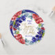 Watercolor floral arrangement of deep blue/purple flowers complimented with red flowers. Save the Date in a whimsical gold script with hand drawn hearts. Date, names and other info are customisable.