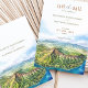 Announce your tropical destination wedding in Hawaii with this beautifully illustrated "Save the Date" card. Featuring a breathtaking watercolor view of lush Hawaiian landscapes, this design captures the natural beauty of your wedding location. The soft hues and elegant typography make this card the perfect way to invite your guests to mark their calendars for your special day. Ideal for beach or island weddings, this card brings a touch of paradise to your wedding stationery.