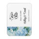 Save the Date magnet is shown in a classic formal layout in the colour white with Black text and script text highlighting the Bride and Groom names and accented with a hydrangea flowers print.
