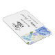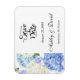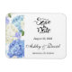 Save the Date Magnet is shown in a classic formal layout in the colour white with Black text and script text highlighting the Bride and Groom names and accented with a hydrangea flowers print.