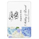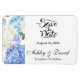 Save the Date Magnet is shown in a classic formal layout in the colour white with Black text and script text highlighting the Bride and Groom names and accented with a hydrangea flowers print.