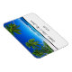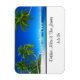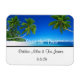 Save the Date flexible magnet is shown with a photo print of a beautiful tropical beach.