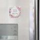 It was a bit smaller than expected, but I was too excited to check dimensions. The product itself send well printed though the grey text is a bit paint. Magnet worked perfectly on my fridge.