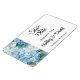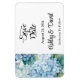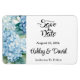 Save the Date magnet is shown in a classic formal layout in the colour white with Black text and script text highlighting the Bride and Groom names and accented with a hydrangea flowers print.