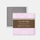 Save the date, damask magnet embellished with pink background and chocolate accent. Copyright © 2009 PixDezines.com and PixDezines on zazzle.com