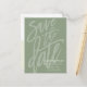 Let your friends and families know your upcoming wedding date with this modern and elegant brush scripted card that features trendy sage green and stylish typography for a fetching mailer. Email us at hello@christiekelly.com for free assistance with personalisation!