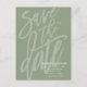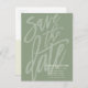 Save the Date Modern Brush Script Sage Green Announcement Postcard