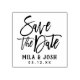 Wedding rubber stamp design features "Save the Date" in modern brushed script writing with a simple custom monogram of the bride & groom names and wedding date.
