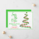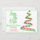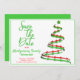 The right side of this "Save The Date" Christmas party announcement design features a modern red and green Christmas tree with. The left side of the card holds the template information. The front border and card back match colours. Personalise the template information, remove text and/or click customise to select a typeface colour, size, and style your prefer.