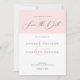 Elegant modern typography Save the date in black with minimalistic pink and white background.