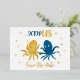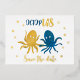 Save the date navy and gold beach funny octopus