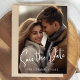 This design features a save the date card perfect for any theme weddings, with a simple photo template, with an elegant, a modern minimalist, a simple, classy, calligraphy script, typography, rustic.